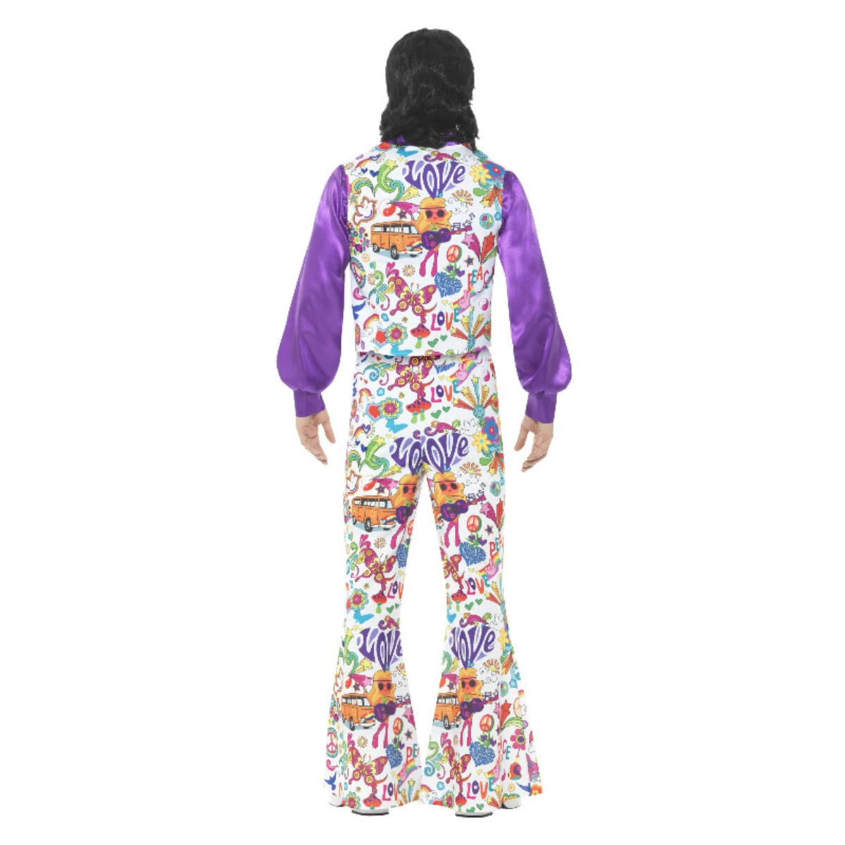 60s groovy hippie kostuum multi-gekleurd, vest, shirt & Flared broek