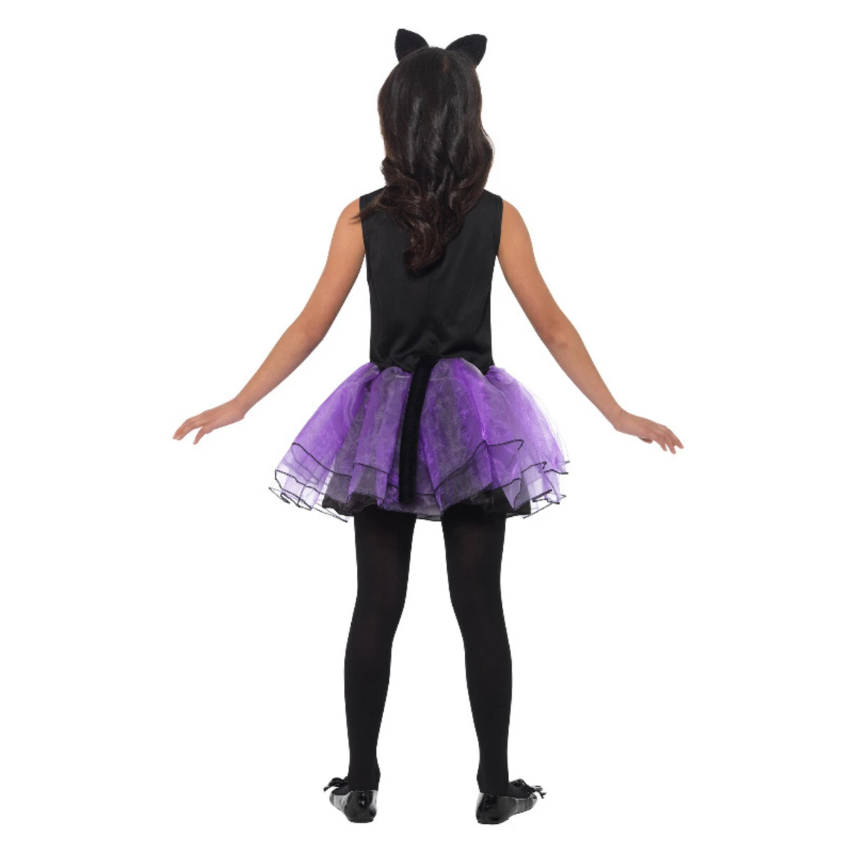 Kat kostuum – zwart en paars wordt geleverd met: