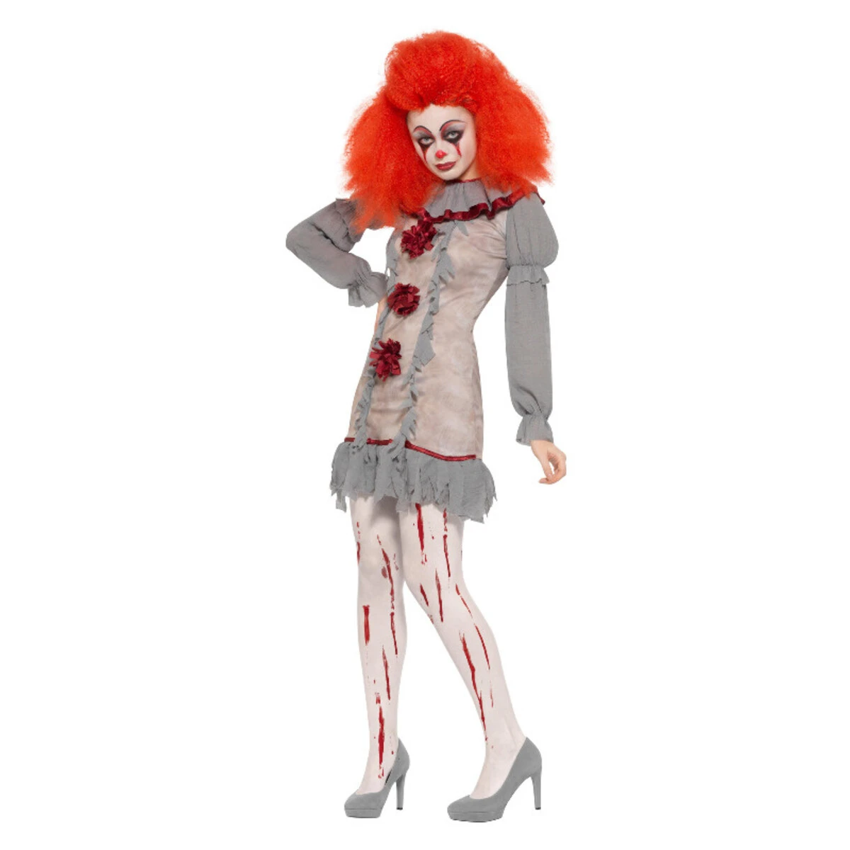 Vintage clown dame kostuum – grijs en rood wordt geleverd met: