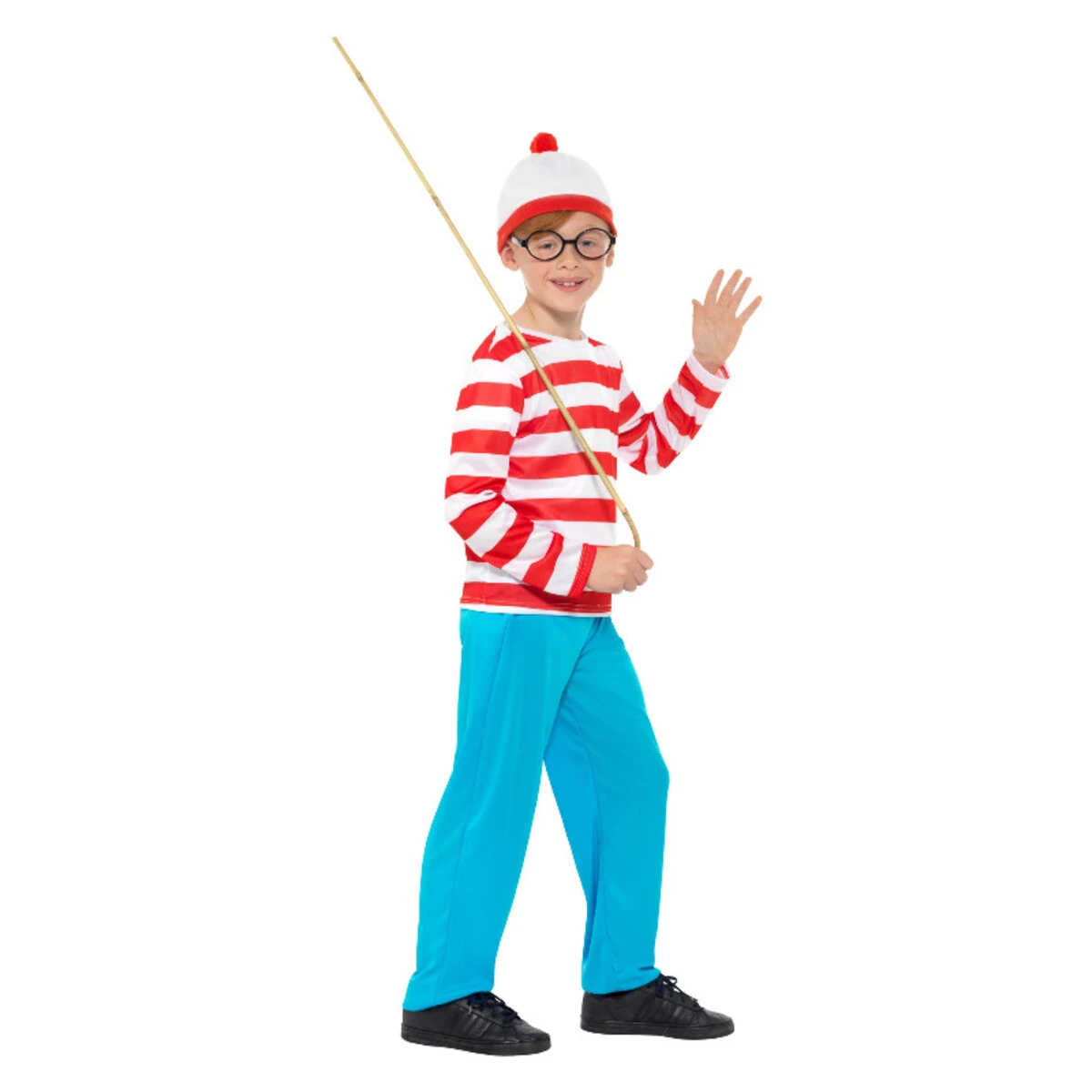 waar is Wally? kostuum – rood en wit, shirt, broek, bril & hoed