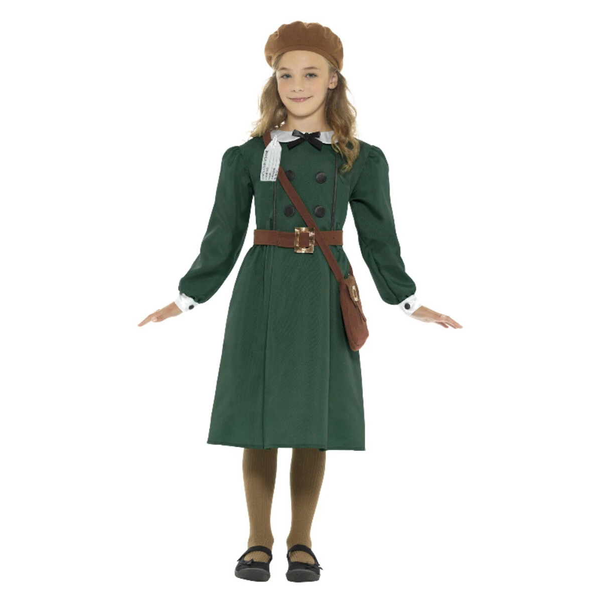 Ww2 evacuatie meisje kostuum – groen wordt geleverd met: