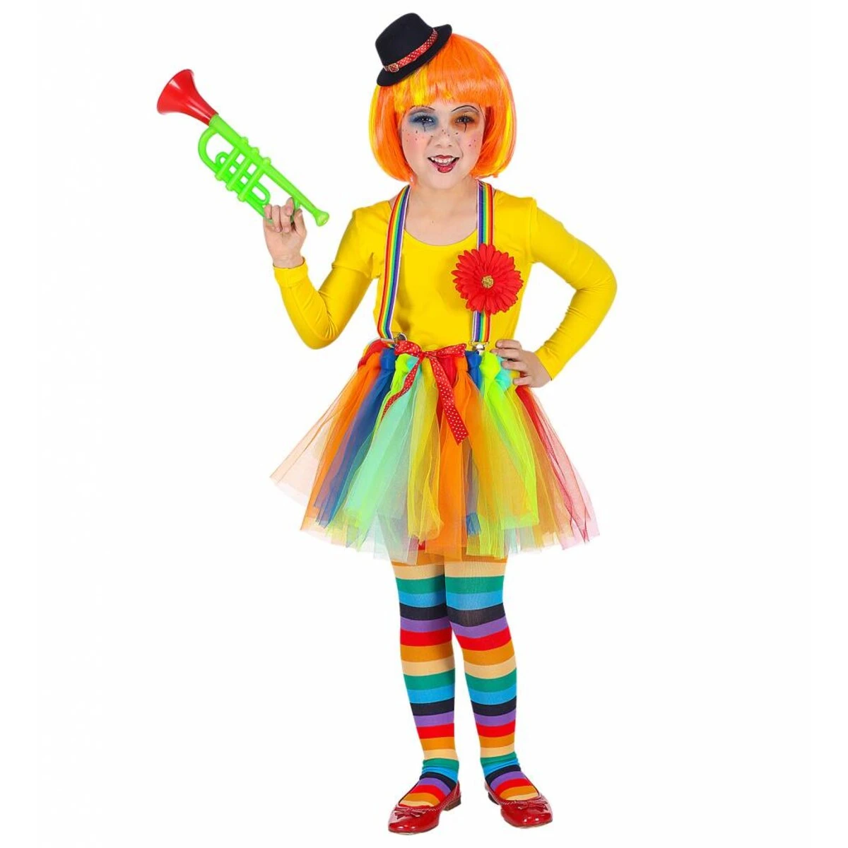 De Clown Kind bestaat uit de volgende elementen: tutu, bretels met bloem, mini hoge hoed. Dit product valt onder de categorie Clownspakken