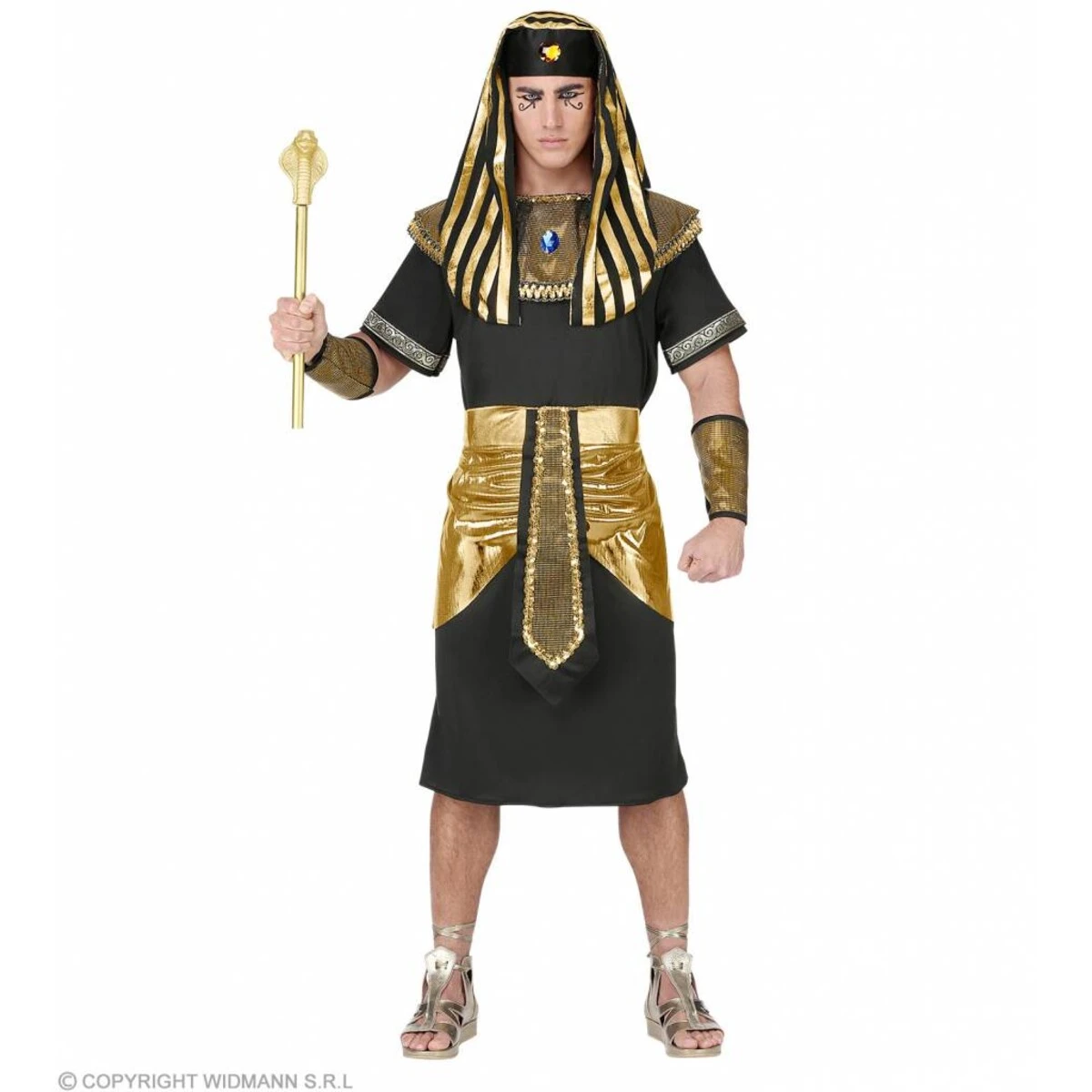 De Farao bestaat uit de volgende elementen: tuniek, riem, kraag, armbanden, hoofdstuk. Dit product valt onder de categorie Egyptische Kostuums
