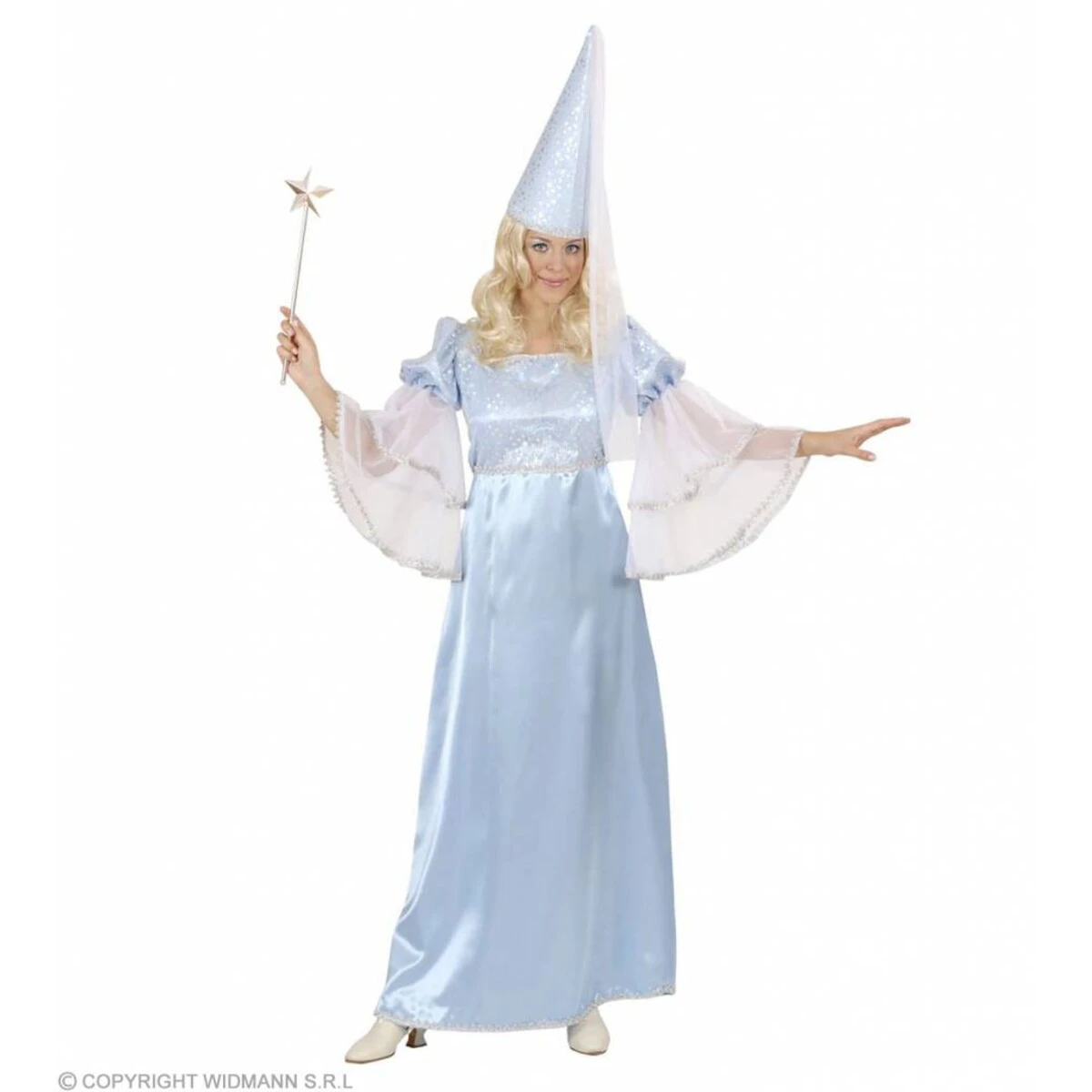 De Fee Lichtblauw bestaat uit de volgende elementen: jurk, hoed met sluier . Dit product valt onder de categorie Fee Kostuums