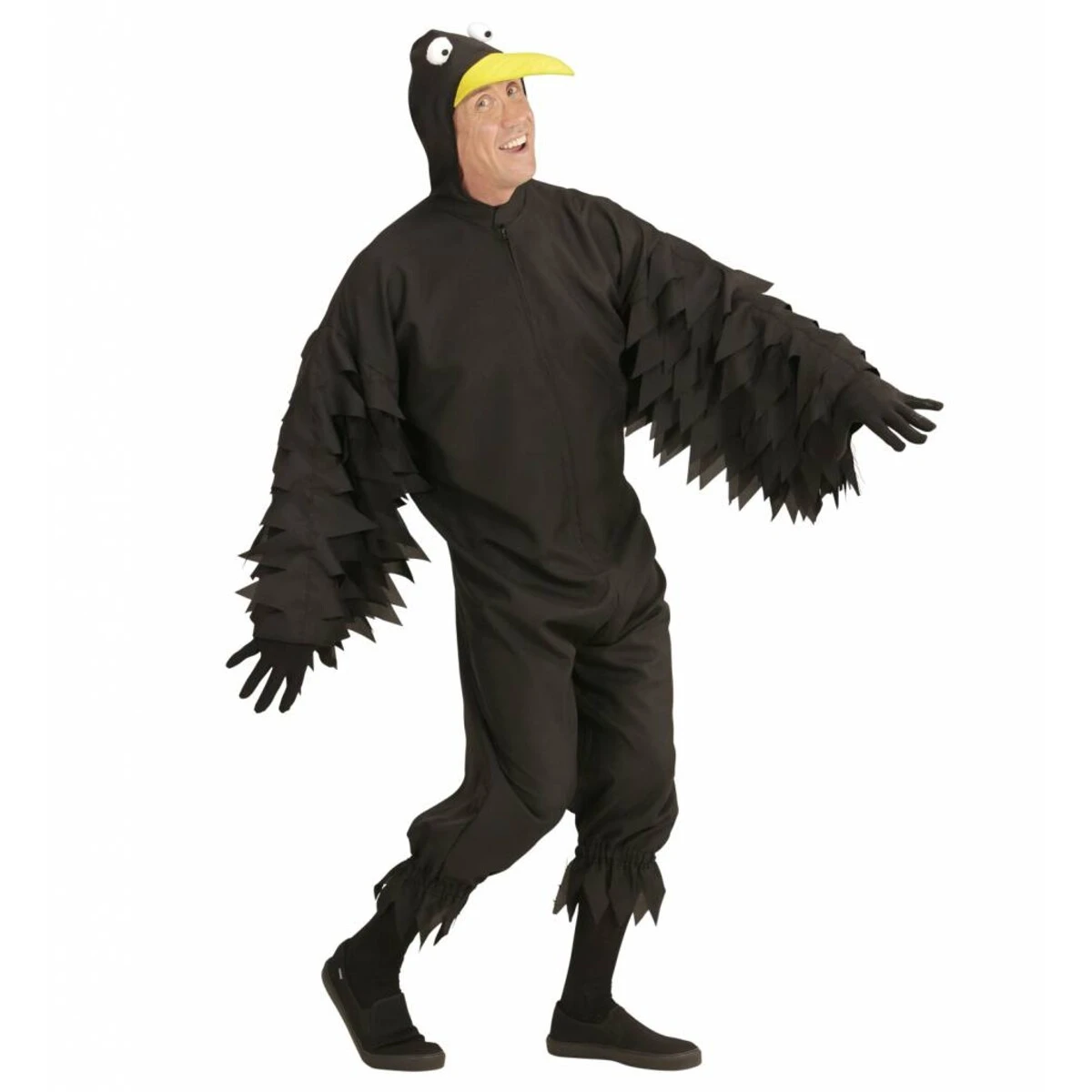 De Kraai bestaat uit de volgende elementen: jumpsuit met kap, masker. Dit product valt onder de categorie Vogelpakken