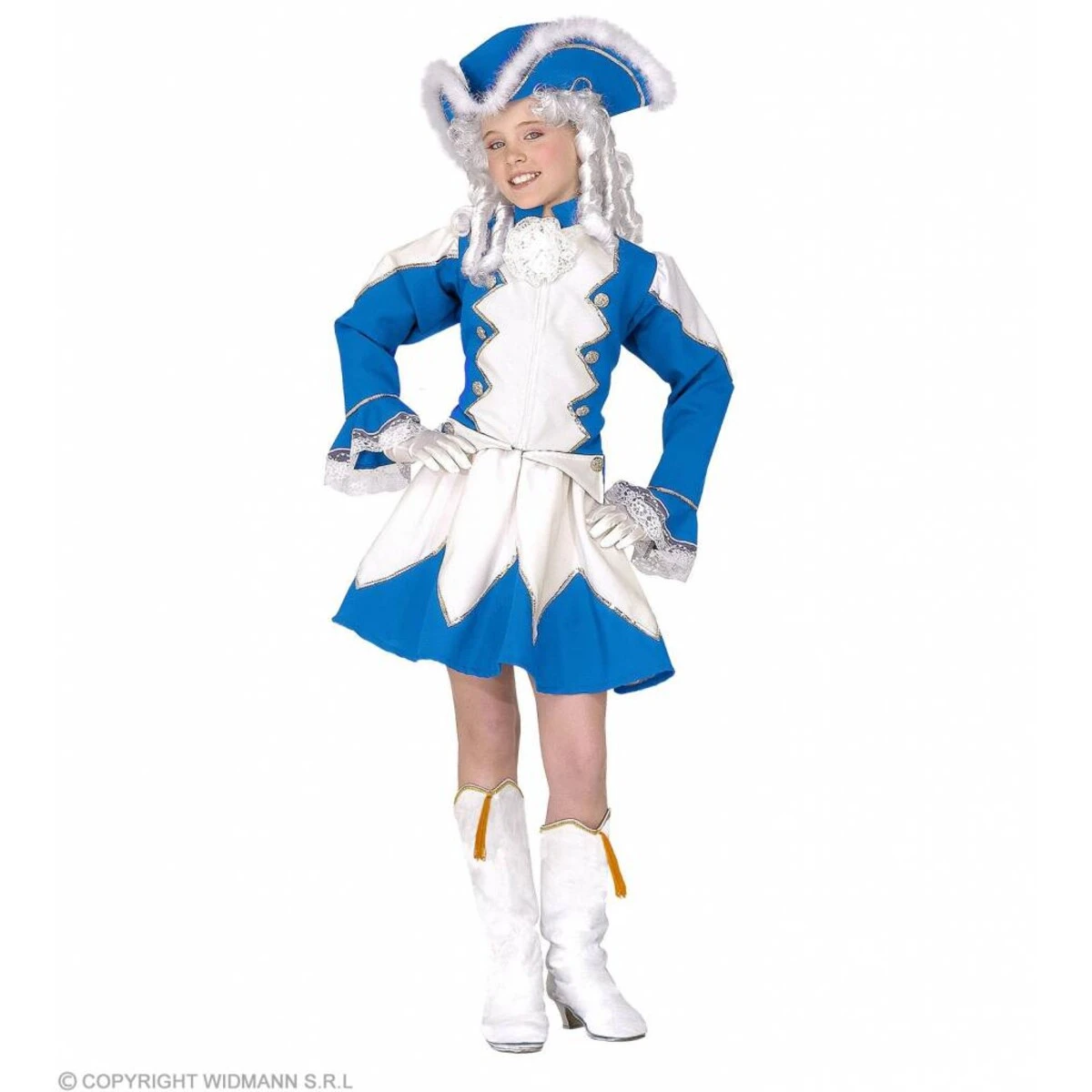 De Majorette Meisje Blauw bestaat uit de volgende elementen: jas, rokje met petticoat, laarskappen, hoed. Dit product valt onder de categorie 0