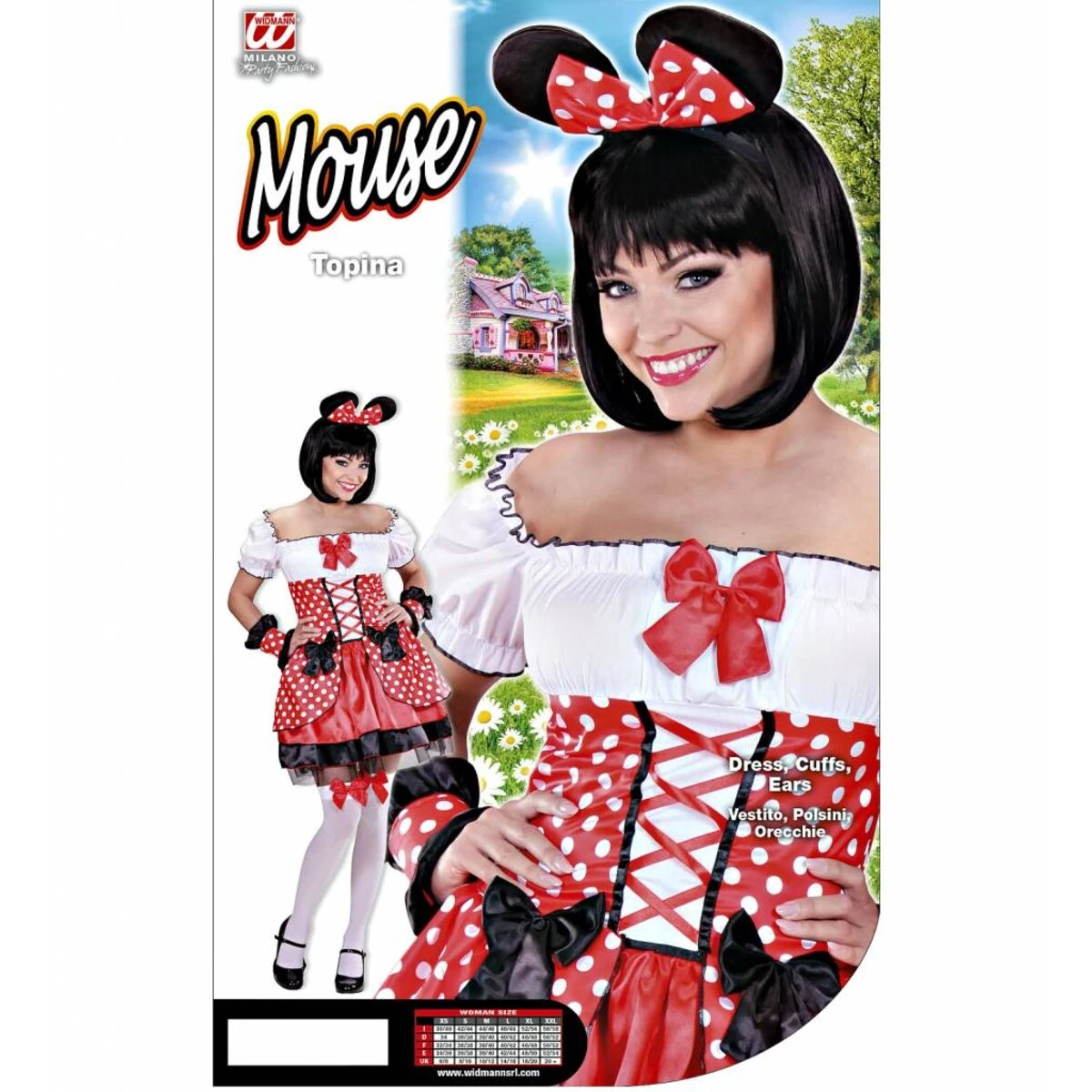 Muisje rood wordt geleverd met de volgende artikelen: jurk, manchetten, oren.