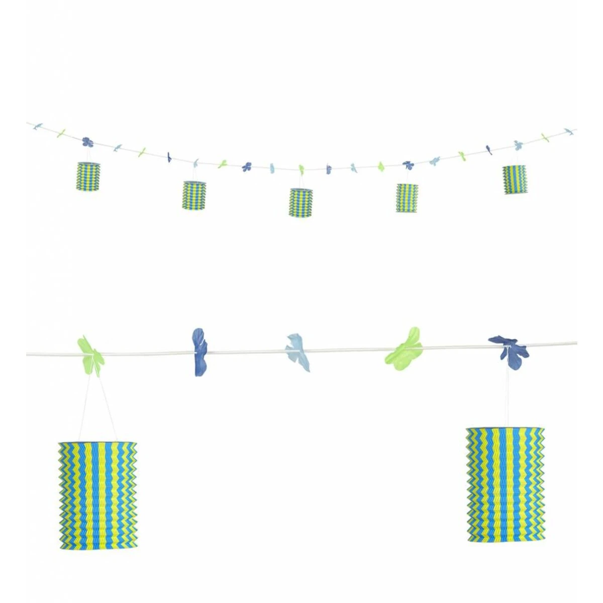 Slinger met lampions en bloemen blauw/geel, 3mtr