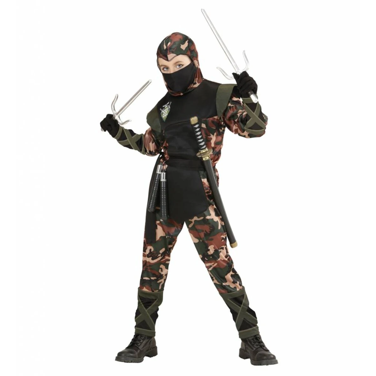 In dit camouflage Ninja Soldaten kostuum krijgen ze je niet te pakken! Alleen voor echte stoere Ninja-kinderen.