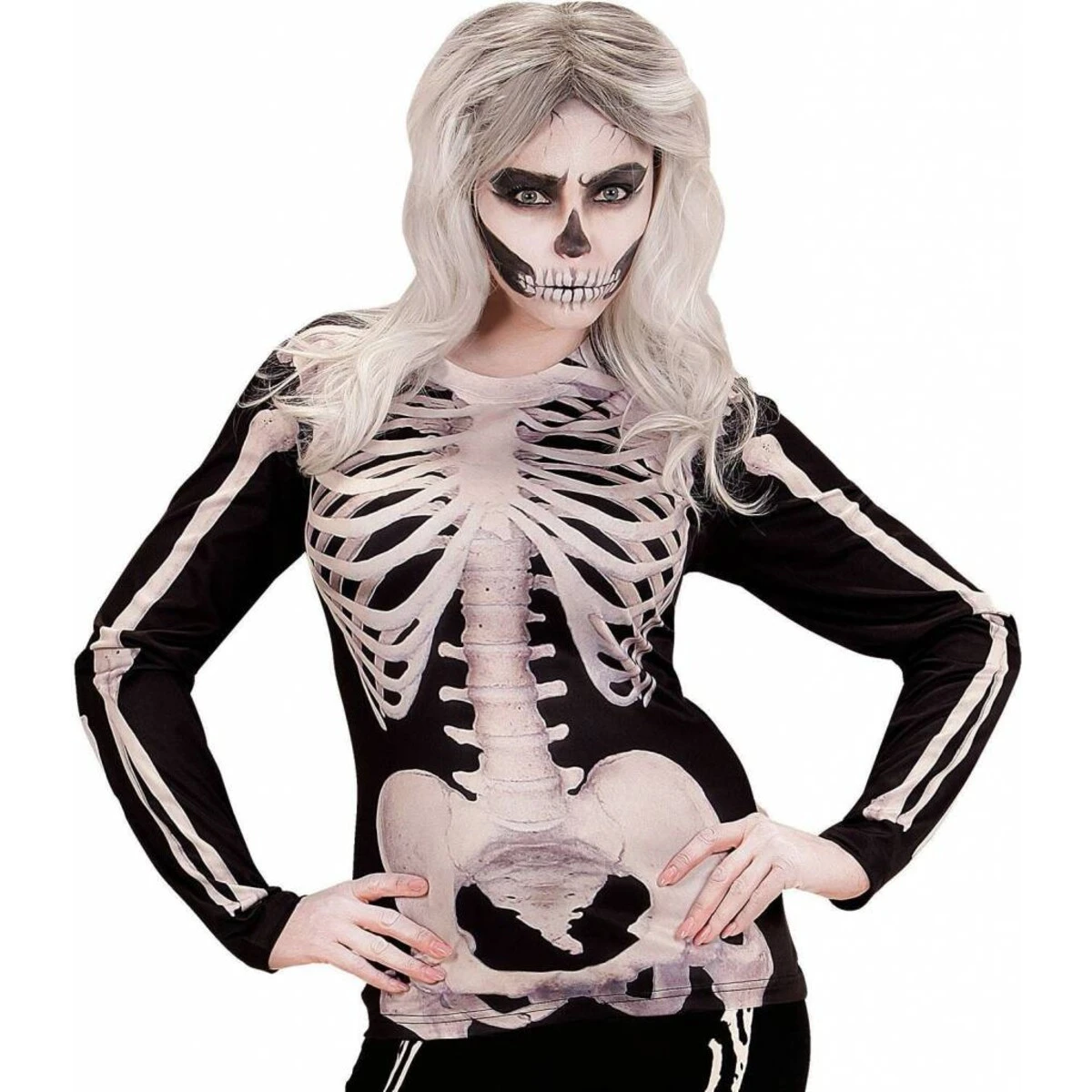 Wil jij verkleed gaan als een eng skelet tijdens Hallowen, carnaval of een ander verkleedfeest? Dit T-shirt met het geraamte van een skelet is hier uitermate geschikt voor. Maak de outfit compleet met een van onze maskers of schmink.