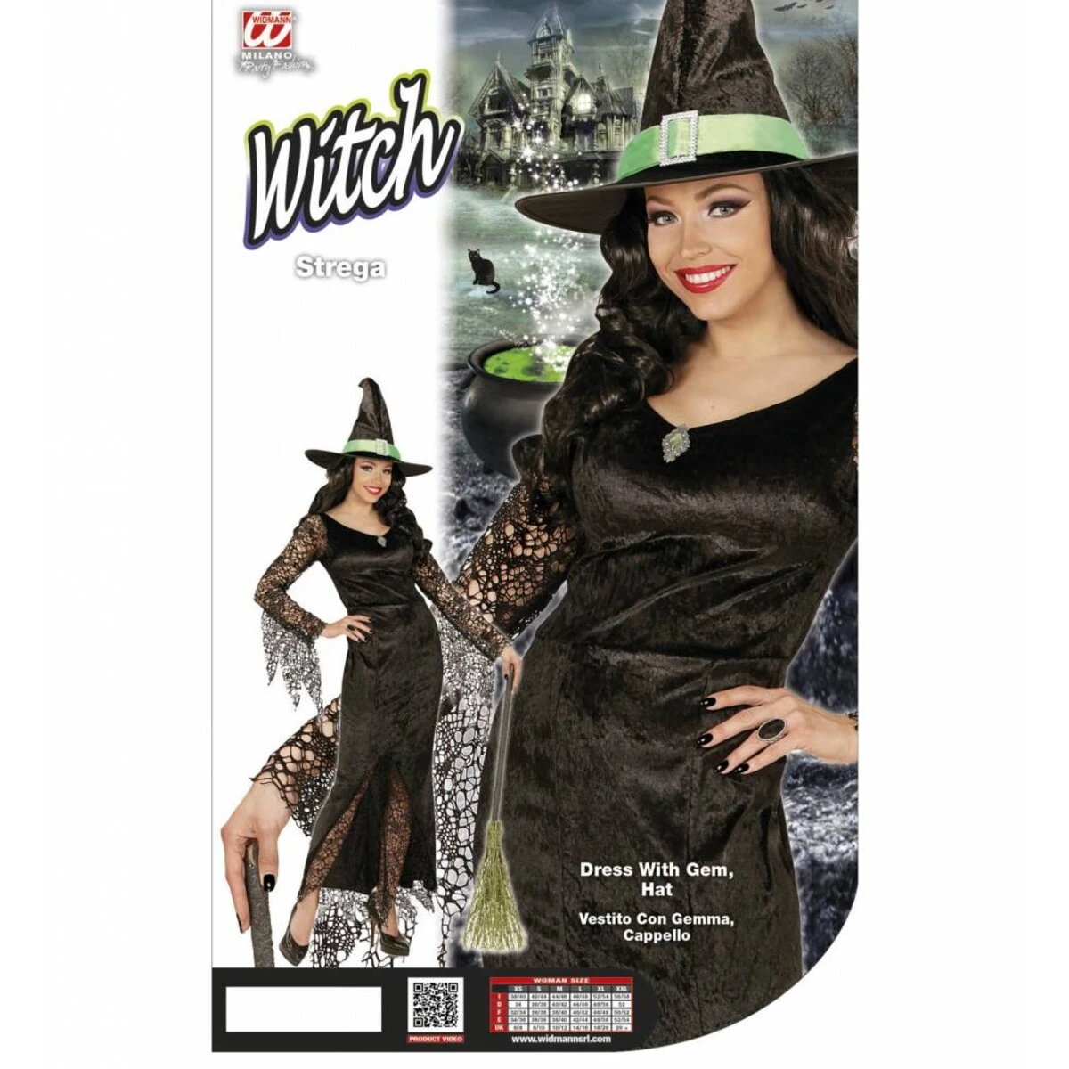 De Zwarte Heksenjurk Darcy Met Heksenhoed bestaat uit de volgende elementen: Jurk met steen en heksenhoed. Dit product valt onder de categorie Heksen Kostuum.